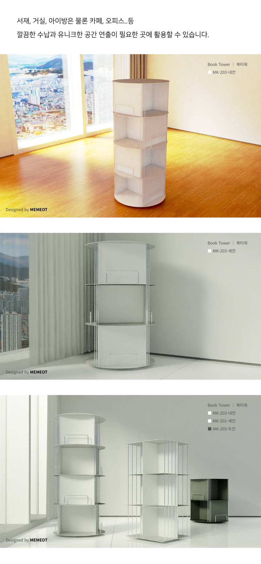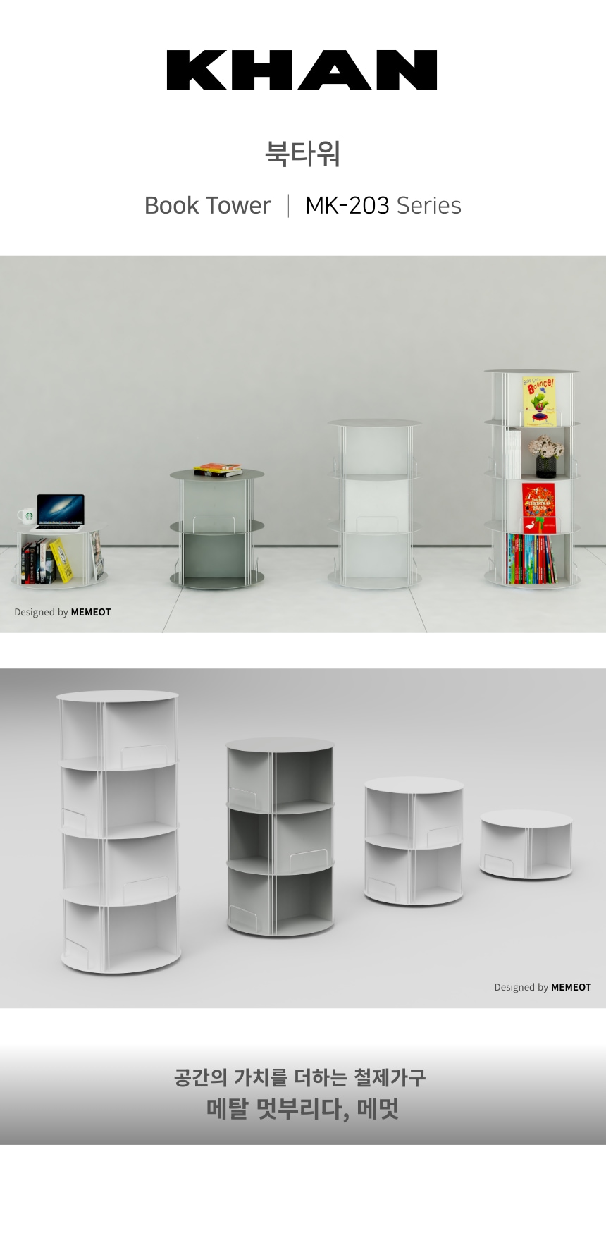 [MK-203] KHAN 북타워 - 금속 모듈 회전 책장 조립식 수납 책꽂이 진열장